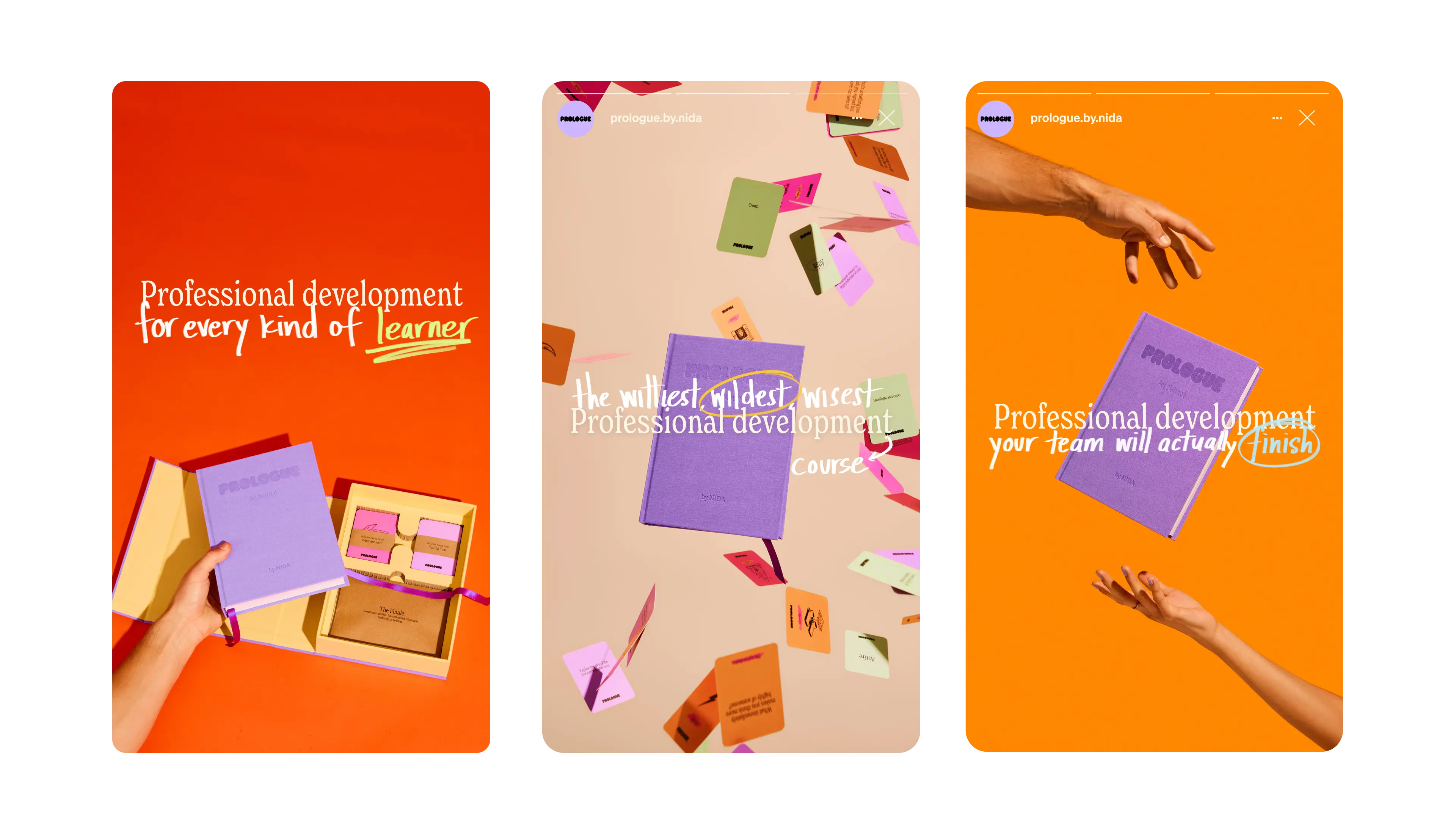 We wrote the book and scripts in Prologue’s unmistakable tone of voice, and crafted hands-on exercises and games to keep the momentum throughout the course. Fun illustrations brought each lesson to life and became one of the brand’s main design elements. QR codes on the pages connected readers to the app — a digital accompaniment featuring short films, audio guides, activities, games, and YouTube videos that complemented the teachings.