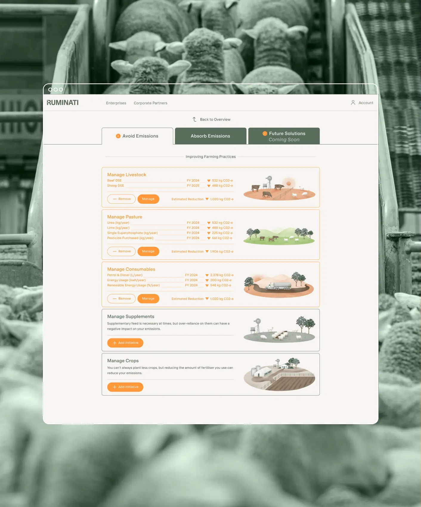 Our efforts worked, and the novelty and speed at which they can create an emissions report meant we immediately gained traction from other farmers and the industry. Ruminati was a vast improvement from the confusing spreadsheets supplied by government agencies.